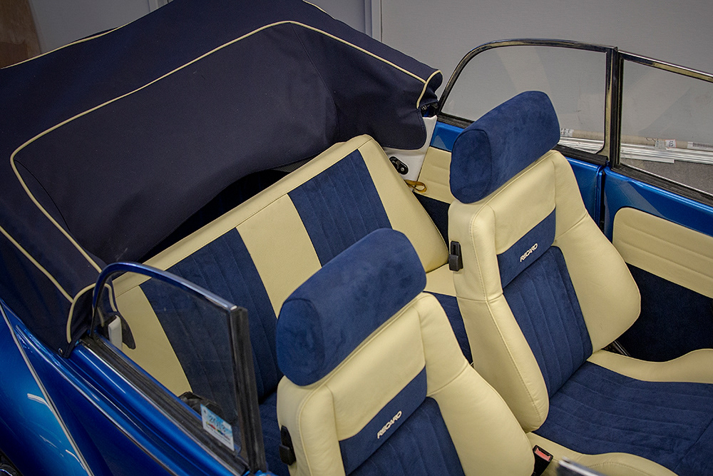 De Volkswagen kever is natuurlijk niet weg te denken in de oldtimer wereld. Zelfs in de auto's van nu zie je soms nog een beetje van de Kever terug. Maar een oldtimer betekend vaak dat de bekleding aan vernieuwing toe is, ook bij deze Kever was dat nodig. Het team van Meneer Sam heeft de kever voorzien van een nieuwe hemel van geperforeerd kunstleer. De voorstoelen en achterbank waren toe aan nieuwe vulling en een nieuw stofje, dit alles hebben we bekleed met Alcantara blauw en beige leer. De deurpanelen konden hierbij natuurlijk ook niet ontbreken en die zijn bekleed met hetzelfde kunstleer en Alcantara als de voorstoelen en bank. Als finishing touch zijn er nog logo's in geborduurd, al met al een heel mooi resultaat.