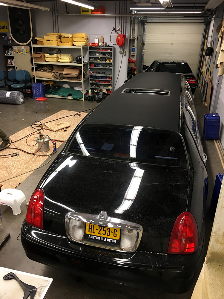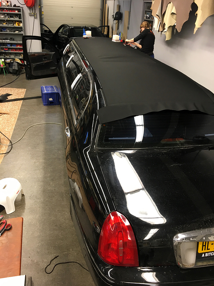 Ditmaal een wat langere klus dan normaal. Het dakvinyl van deze Limousine moest vervangen worden.